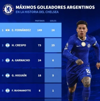 26球,恩佐超越克雷斯波成为切尔西队史进球最多阿根廷球员